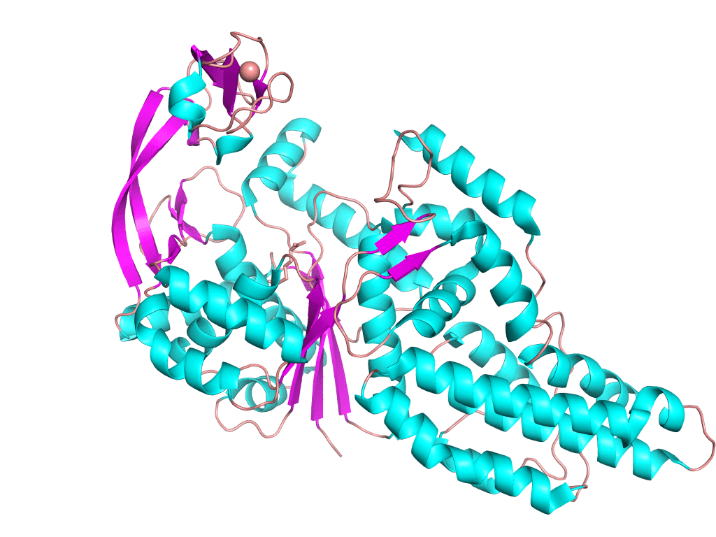 In addition to call MUSCLE to perform the alignment, custom.aln() will also serch for and download the requested orthologous sequences for you. So, you just have to worry about prividing a list with the species you are interested in. For instance, suppose we have been examining the following structure, which corresponds to the methionyl-tRNA synthetase of Escherichia coli.