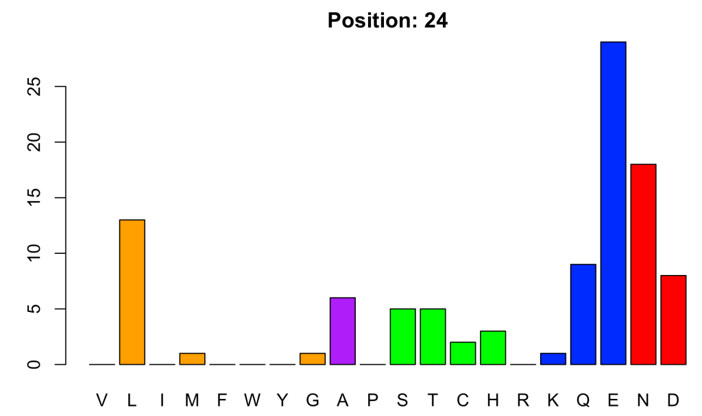 - Q: Percentage at which the amino acid glutamine (Gln) is found at that position.